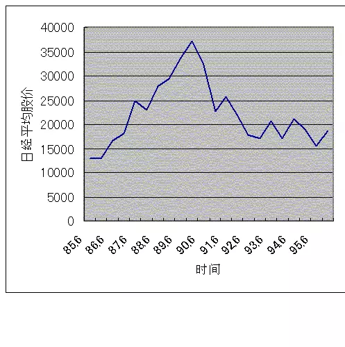 1989年12月29日,日经平均股价达到最高38915.87点,此后开始下跌,土地价格也在1991年左右开始下跌,泡沫经济开始正式破裂。到了1992年3月,日经平均股价跌破2万点,仅达到1989年最高点的一半,8月,进一步下跌到14000点左右。大量帐面资产在短短的一两年间化为乌有。