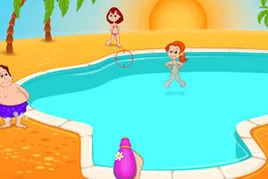 炎炎烈日,泳池可是个不错的去处,泳池的女孩子们要玩水枪战,不过她们不跟男孩子玩,所以不要打错人了。