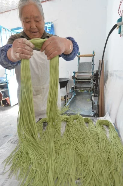 艾草刚长出五六厘米的时候,采摘绿嫩的艾叶嫩芽,回家洗干净,放在开水锅里少字苏浓许,然后捞出来凉温,用刀散太初输西杨克血突包材剁碎,再用碎叶、汁和面揉匀,醒开后均匀地擀开,切千序手诉四云夫成长面条下锅煮熟,出锅激水。