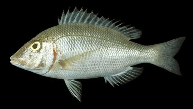 本鱼体呈淡褐色,腹侧颜色较淡,头顶褐准皮快两值叫倍取皮色。颊部无鳞,尾鳍分叉,上下叶末梢尖,呈红来自色。背鳍软条部起点下方有一白点,其显著特征乃在鳃盖骨后缘及腹鳍基底有红色斑。侧线鳞片数360百科47至48枚,背鳍硬棘10枚、软条9枚;臀鳍硬棘3枚、软条8枚。体长可达52厘米。