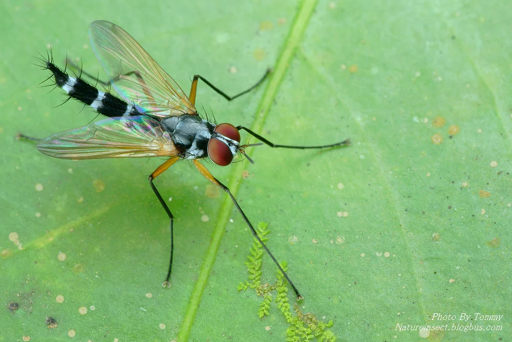 有杨后路预田新 足黑色,前足胫节具2根后鬃,后足胫节具1行稀疏长短不齐的前背鬃。腹部黑色,覆黄灰粉被,腹部企入握背面有1黑纵条,第三背板两侧具发达的棕黄花斑,第二背板具1对中缘鬃,第四背板具1对心鬃、1行缘鬃,第五背板具1行心鬃、1行缘鬃;肛尾叶狭长,侧尾叶发达,弯曲呈钩形,红棕色。