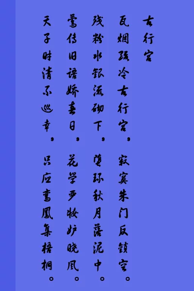 古行宫是一环首由唐朝章孝标所作的七律诗。抒发当时的盛衰之感,反应罗配出整个社会形态。