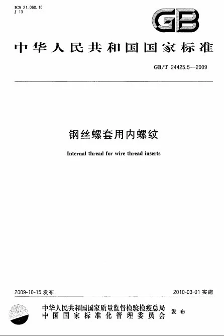 钢丝螺套用内螺纹,发布日期是2009-10-15,标准号是GB/T 24425.5-2009。