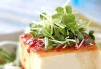 3 盘内放入蔬菜垫底、放豆腐、浇梅肉汁、撒萝卜苗即可。