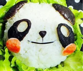 10、用模具将香菇切成熊猫的耳朵眼睛形状,摆在合适位置