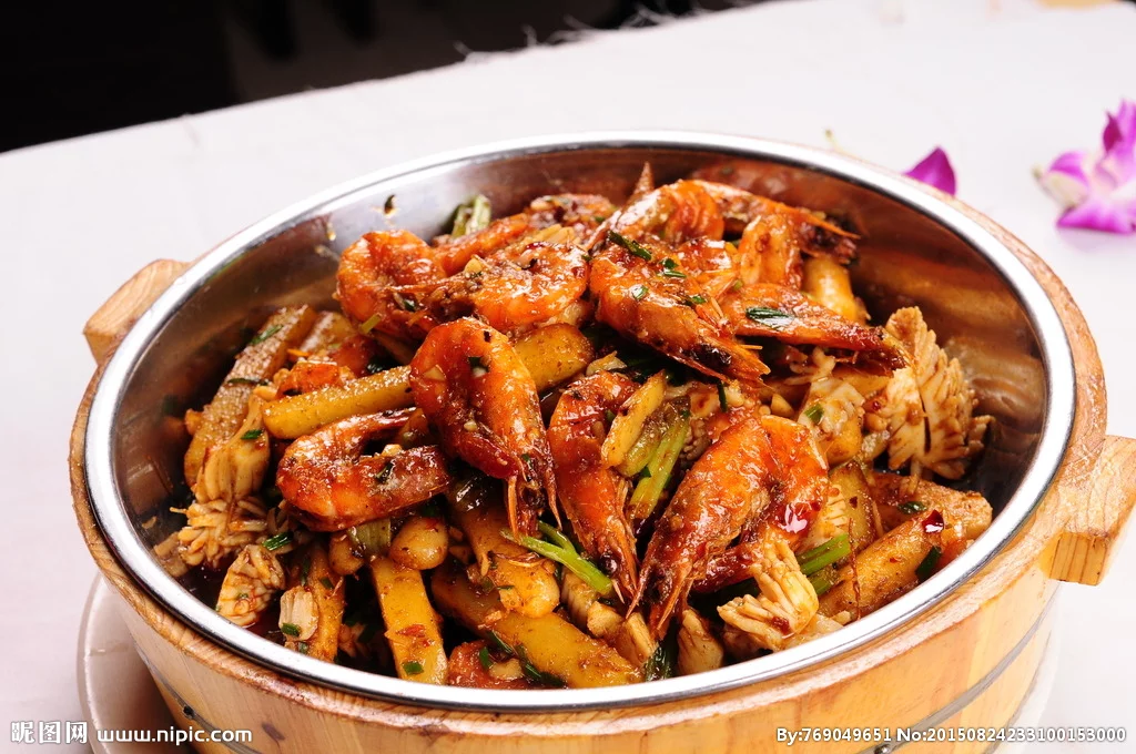 1.鱿鱼洗净切成卷来自,河虾去掉泥肠,芥蓝切成片洗净备用;