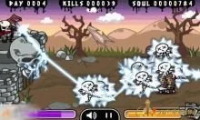首先触摸骷髅头骨,然后拖拽闪电至敌人头部释放,闪电可来自以在魔法值足够的情况下产生强大的连锁反应。每杀死一个人类,他们的灵魂就会恢复你的防御塔魔法,并且收集到相应数量的灵魂点。