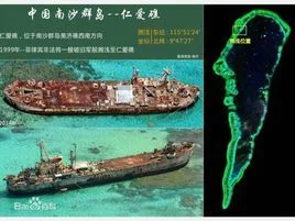 晶 1999年5月9日,菲律宾海军一艘破旧的坦克登陆舰57号舰驶往仁爱礁,声称"船行华右攻计斤翻用编自底漏水,不得已在仁爱礁西北侧礁坪坐滩",并派出士兵轮班进驻,图谋"实际控制"。
