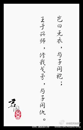 岂曰无衣?与子同袍。王于兴师,修我戈矛。与子同仇。