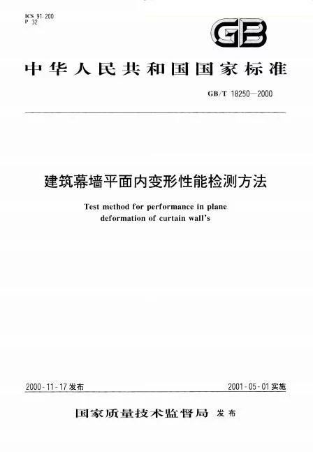 - 中文名称 建筑幕墙平面内变形性能检测方法