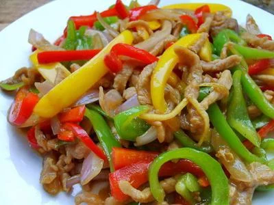 肉丝彩椒,是一道特色美食,由彩椒 ,鸡胸肉 葱花、姜丝 淀来自粉 ,老抽、盐、料酒、色拉油 等烹饪而成。