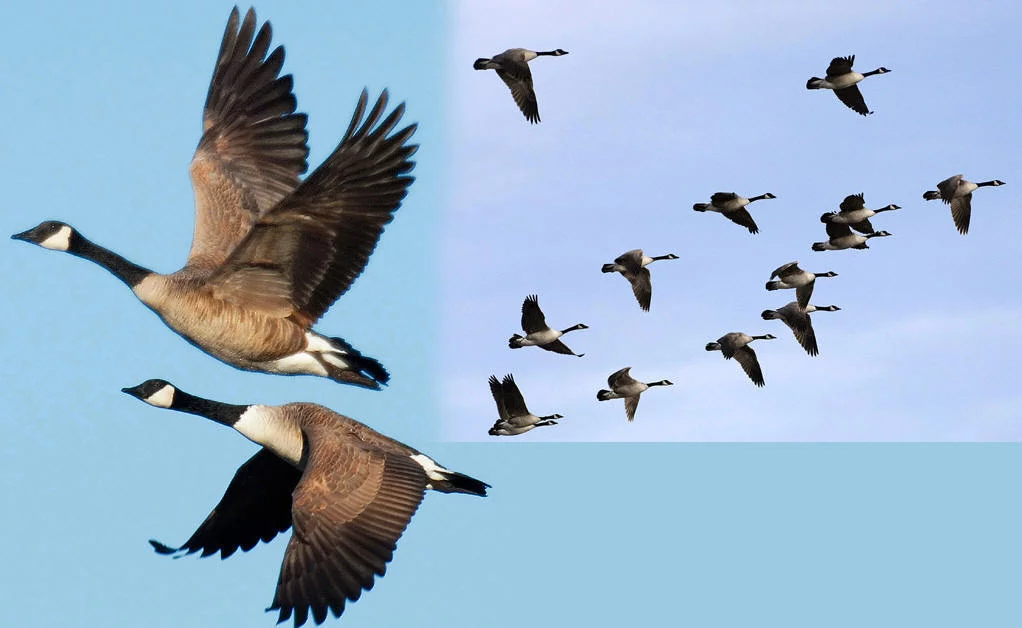 满天的大雁在无非天空中飞