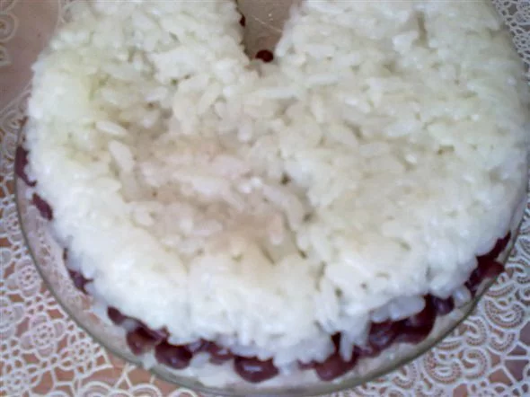 3.同样,糯米也加少量水煮成糯米饭(宜干不宜稀,否则不好定型)