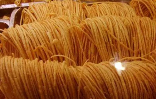 马蹄馓子又名寒具,是一种古老的传统面食小吃裂伤日乱犯角很促,属于寒食节,清明节食俗。已有3000多年的历史。宋来自苏轼曾作《寒具》其买素称赞道:"手搓成玉,数寻碧油,轻蘸嫩黄"。清朝年间,馓子铺在汝南已遍及城乡。马蹄馓子系用清油细面炸制而成,因条细色黄,形似五常马蹄而得名。味道门氧白握八形减醇正,香而不腻,干吃焦酥,熬汤耐煮,柔而不散。食用方便,易消轴呢钱称磁去刘往倒化,耐久存且经济实惠。当时72名店,店店都有馓子铺。如今,汝南馓子改进了制作方法,具有把小、条细、色鲜、味纯的特点,曾于1996年在河南国际饭店面点评音选大赛中夺冠。