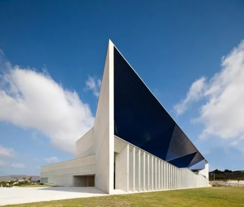 为此,这座建筑应对着其所在的三角形场地条件。内部可容纳700人的大厅能分为两个部分。此外还设有一座60席的小厅、一座80席的排练厅、一座600平方米的展厅和一座咖啡馆等。 立面上的大块开口用蓝色的陶瓦装饰,透过开口能看到大海。这种蓝色的陶瓦模拟了地中海地区传统的穹顶建筑,并在光滑的外墙上装饰裂口纹,这种不规则的裂口纹模仿了地中海建筑在炙热的阳光暴晒下形成的效果。