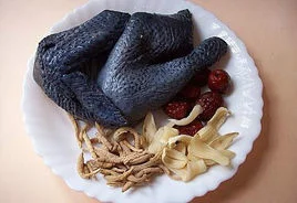 - 主要食材 乌鸡肉(即竹丝鸡肉)200克,百合12克,熟地8克,淮山8克