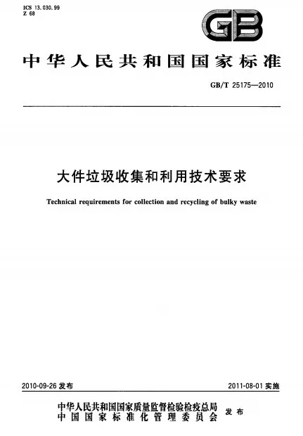 中文标准名称 StandardTitle in Chinese: 大件垃圾收集和利用技术要求