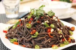 材料:蕨根粉100克 生抽1汤匙(15ml) 米醋3汤匙(45ml) 白糖2茶匙(10克)、盐1/2茶匙(3克) 大蒜2瓣 青红椒各一根 红油1汤匙(15ml) 油炸花生米20颗