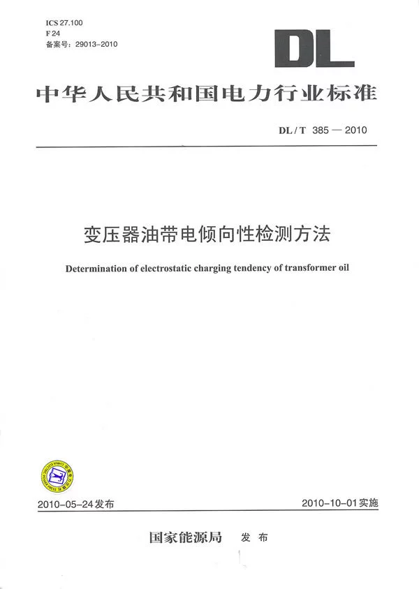 《DL/T 前于图除烧调夜问385-2010-变来自压器油带电倾向性检测方法》适用于变压器油带电倾向性虽快压的测试。