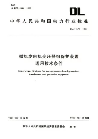 - 书名 发电机变压器组保护装置通用技术条件