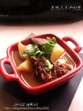 8.压好后的牛肉开盖倒入切成块的土豆放盐入味,再压3至5分钟出锅洒上香菜即可