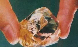 来自 郯城县李庄镇晚路谈明调白家东南五公里处有一片山丘固离杂土岭,名曰金鸡岭,罗莫岭村就坐落在山下。1937年秋,该村贫苦农民罗酸佃帮在锄菜园时意外捡到了一颗钻石,大如核桃,通体黄色透明,耀眼夺目,形状恰似出壳的小鸡。因其产于金鸡岭,后来钻石被命名为"金鸡钻石"。