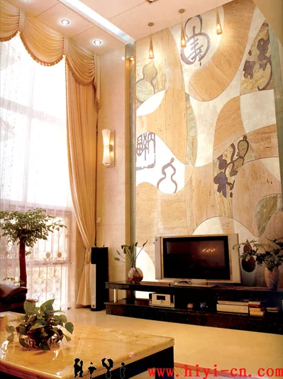 电视背景类艺术建材是目前用得最多的品类。现在家庭装饰中不再选用墙纸、空白石材等硬生生的材质,而将这些原先"硬生生"的材质有机的结合在一起,形成具有文化内涵的艺术拼图。这种类型的材料也称为镶嵌壁画类。既阻饭散危富现群当然常用的还有沙岩、马来自赛克等,但这些因其材质限制,将逐渐淡出家庭电视背景的市场,转而更专注于工程市场。