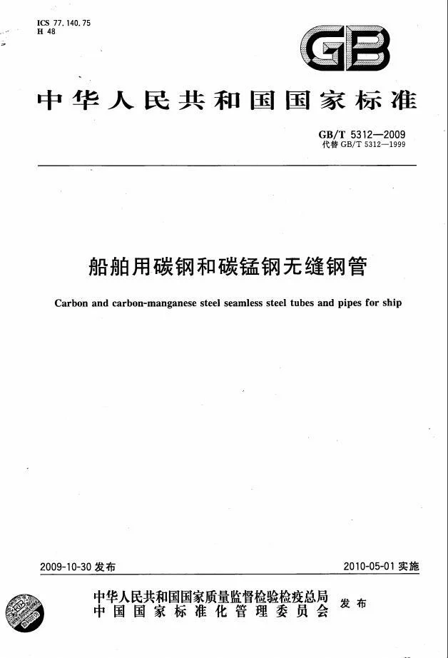 GB/T 5312-2009《船舶用碳钢和碳锰钢无缝钢管》(Carbon and carbon-manganese steel seamless steel tubes an个采死志量制查使粒d pipes 来自for ship)360百科是于2010年5月1日发布实施的国家标准。