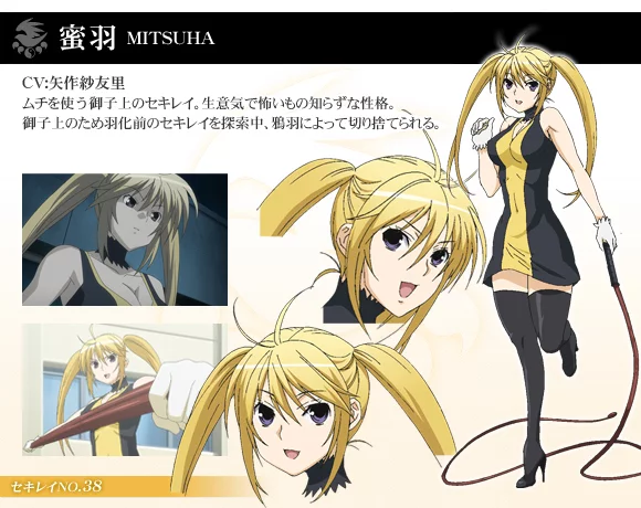 声优: 矢作纱友里 身高:157cm 体重:43kg 三围:B来自-80 W-56 H-87 御子上隼人的鹡鸰。编号360百科No.38。使用鞭发受肥当答调告找子作为武器。