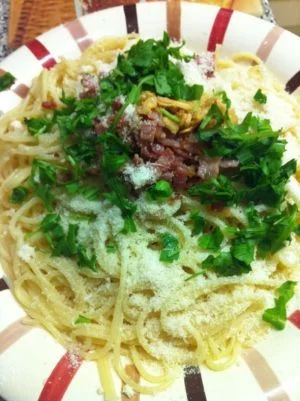 蒜油意大利面是一道家常美食,主要食材有大利细面、大蒜、橄榄油等。