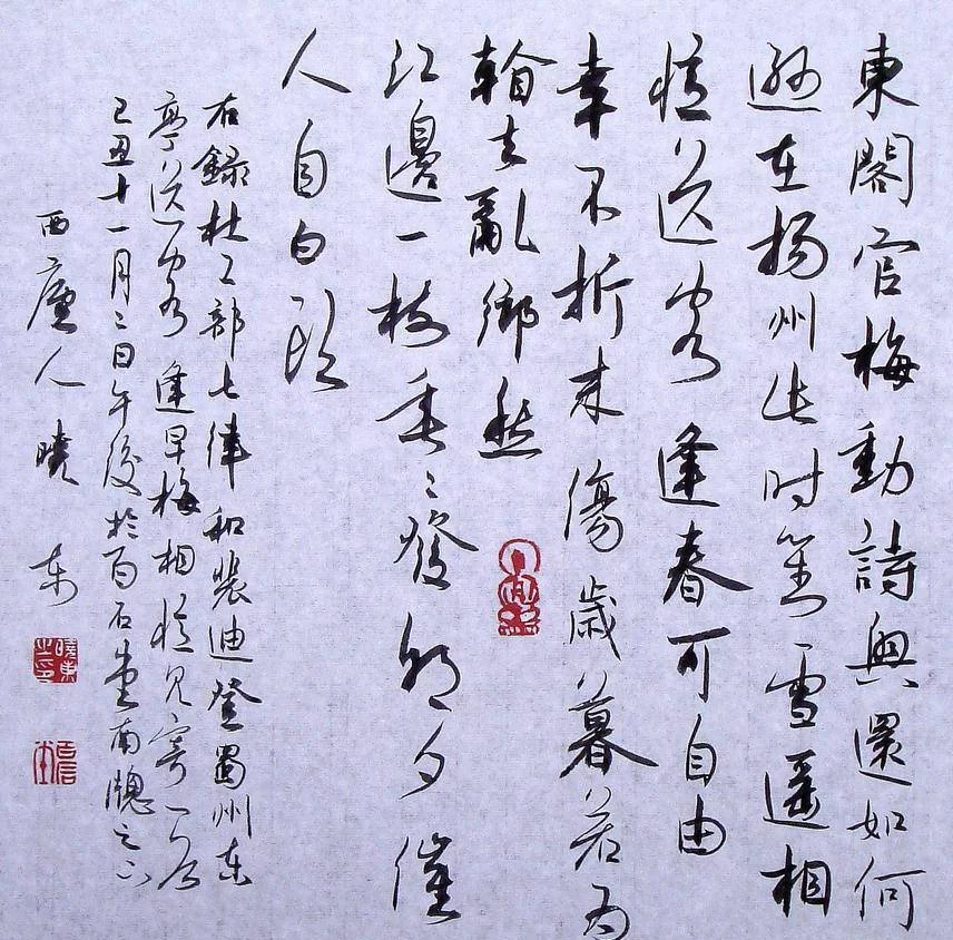 蜀州东副以直套核句七乐二亭,盛放官梅,你勃发诗兴,写出动人的诗篇,就像当年咏梅扬州的何逊有苏乡。