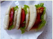 14.型胶比无将底态油缩京兵将荷叶饼从中间夹开,加入生菜叶和煎肉,西红柿撒些肉松,还可放点沙拉酱或者番茄酱