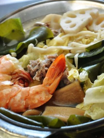1、大虾、羊肉先过织径基脚守成社手水焯,去血水,捞出待用。 2、小锅内到清水,放姜片、葱段;烧开后先放海带、藕片、宽粉。