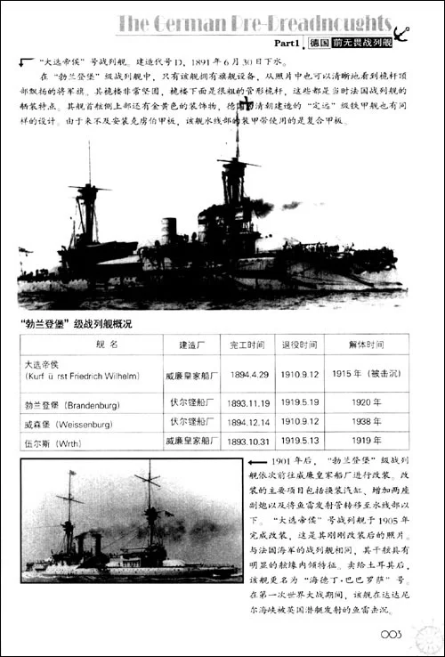 是2010年航空工业出版社出版的图书,作者是现代舰船杂志社。本书讲述了德国海军历史上曾经叱咤风云的功勋战列舰的发展、辉煌与没落。