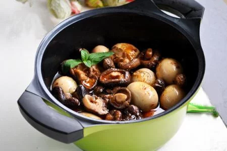 1、花菇用清水稍加淘洗后倒入温水盆中,菇盖朝下,调入1茶匙白糖搅匀,泡发备用。 2、将鸡蛋外壳洗净后放入锅中,锅内坐水水量没过鸡蛋,冷水中加一点醋开煮,水沸腾后继续煮10分钟熄火;将煮熟的蛋迅速放入冷水中冷却,将蛋壳剥除。