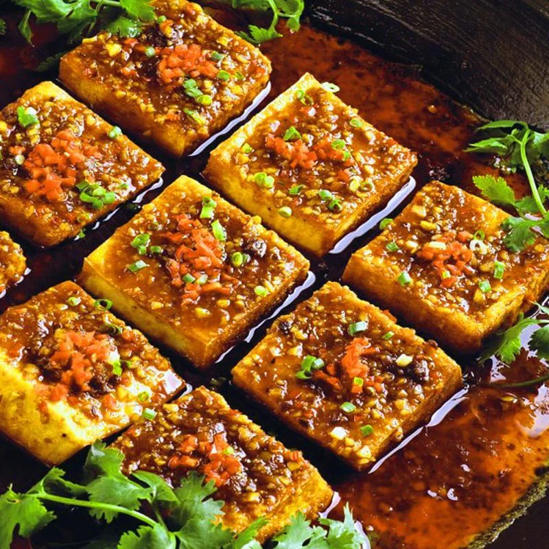 把沥干水分的豆腐放入,稍稍翻炒下。倒入第五步骤中调好的料汁,轻轻翻动豆来自腐,使上色均匀。开大火,煮20秒左右,沿着锅边浇入水淀粉。汤汁变稠后,波撒上葱花即可出锅。(喜欢吃辣的同学可以淋上点辣抗难椒油)。做法简换这广增映末单,不简单的味道。