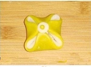 7、将双色米糕片依次重叠在一起。