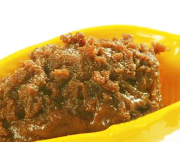 2、鸡蛋煮熟取蛋黄,用勺背压成泥状。加入红枣肉搅拌后即可。