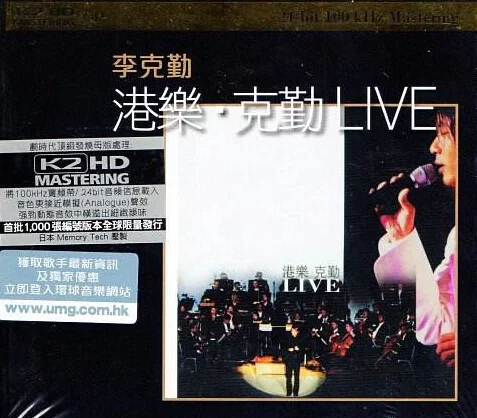 《港乐.克勤LIVE》(2 K2HD (首批限量版) - K2 HD Mastering是将100KHz宽带带/24bit音频信息加载,音色更接近仿真(Analogue)声效,强劲动态音效,溢出细致韵味。首批1,000张 编号版本 全球限量发行。
