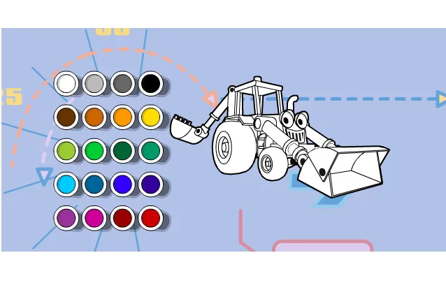 来自 巴布工程车3,这次是巴布的两用工程车Scoop,前面能推土,后面能挖土,为它填上好看的颜色。