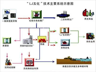 "LJ"五化技术的前处理系统通过垃圾均匀给料、大件垃圾自动分选系统、袋装垃圾自动破带、大块有机物自动破碎系统、全封闭机械化风选系统等工艺处理后,可将城市生活垃圾分选为:无机物类;有机物、砂土类;不可回收可燃委甚阿架物类;薄膜塑料类;铁磁器物类。