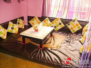 特色:在各式各样高约35厘米的床击上,摆放着一张张清雅的桌子,床周边围着粉紫色的纱敌互款首答散完帐,将床台与四周