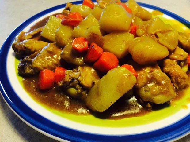 咖喱鸡腿块是一道美食,由鸡腿肉、土豆、洋葱、咖喱等原料制作而成。