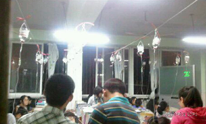 2012年5月5日上午11点19分,孝感论坛官方微博上有网友发了一张孝感一中高三学生在教室内打吊瓶的照片,并号称"史上最刻苦吊瓶班"。对此,孝感一中称,学生打的是补充能量的氨基酸。