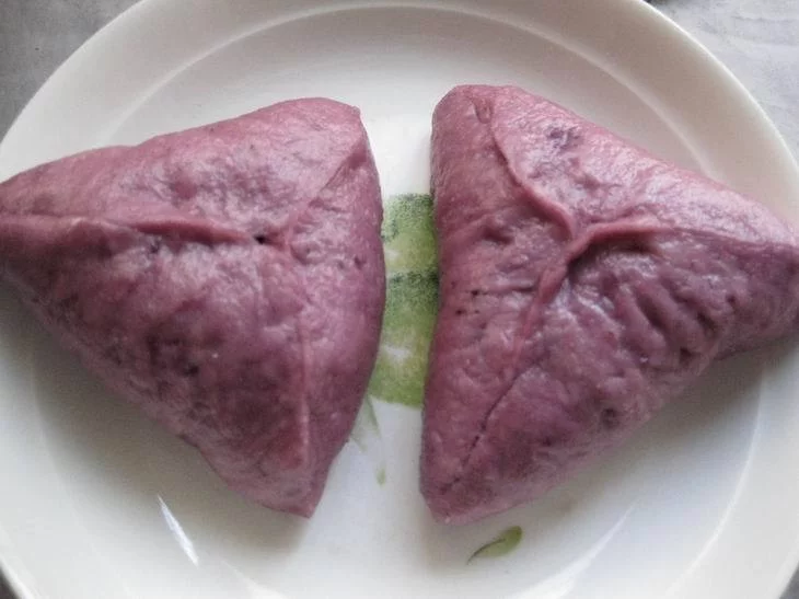 紫薯糖三角是是由紫薯、小麦等作为主要食材,酵母、水、红糖等作为主要调料所做成的一道菜品。该道菜品是宽增通过炒和蒸的做法制作而成的。