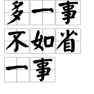 多一事不如省一事(duō yī shì bù rú shěng yī shì),指不管闲事,事情越少越好。同"多一事不如少一事"。