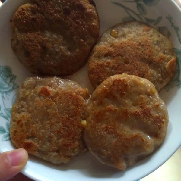 第三:开火热锅。烧热油,就把那堆捞好的东西倒进去。摊薄摊满整个锅。等,等,等。用不锈钢勺子割开8块。两面煎一会出锅。