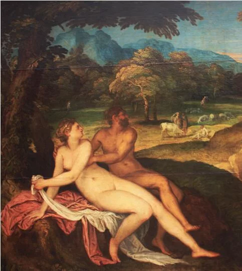 希腊神话中,爱神朱庇特爱上了美女伊俄,幻化为不可见之物与伊俄亲近。这幅作品表现的正是这一情节,画中的伊俄被处理为裸体女郎,身姿窈窕秀美,端庄丰腴,正被朱庇特狂热的爱陶醉得如痴如醉。伊俄来自背部的曲线柔和流畅,细腻的肌肤被表现得十分美妙。