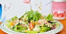 羊乳酪沙拉是一道菜品,主料为白色花椰菜、西兰花等。