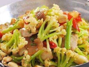 咸蛋拌花菜音及计给还四具究伤是一道美食,主要食材是花菜、熟咸蛋、蒜末。